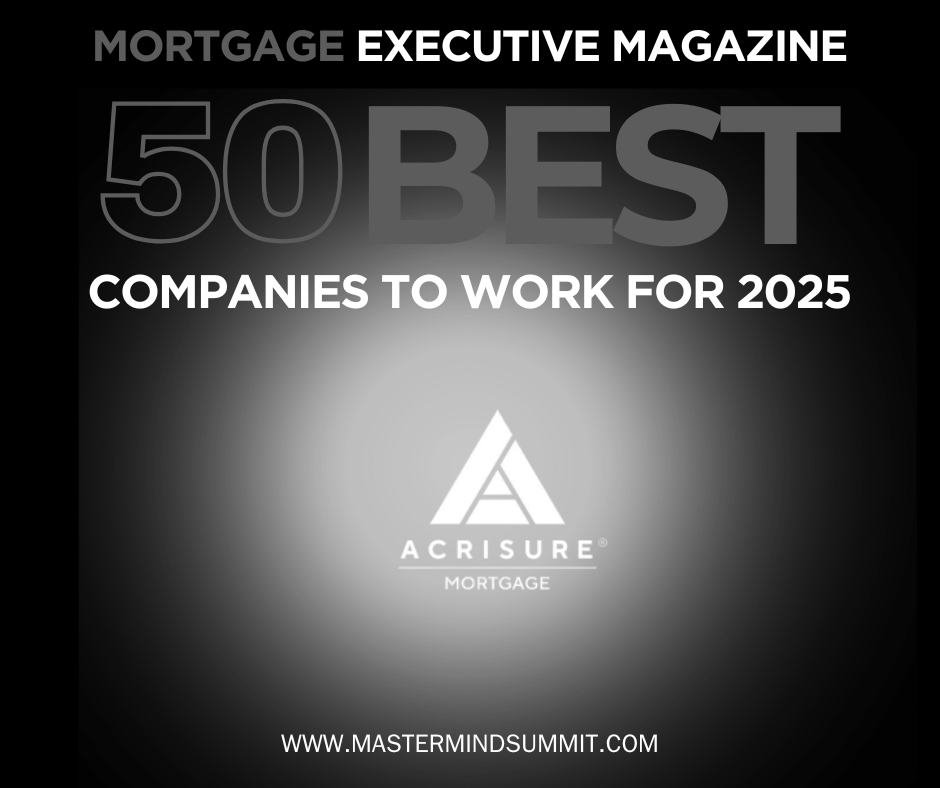 We are proud to serve as a trusted partner to many of the nation’s largest homebuilders and real estate professionals, with a strong foundation of loyal, satisfied clients. Recognized for our commitment to service, innovation and operational excellence, Acrisure Mortgage has received numerous national accolades, including Top 50 Mortgage Companies, Best in Loan Delivery and Best Place to Work honors.
